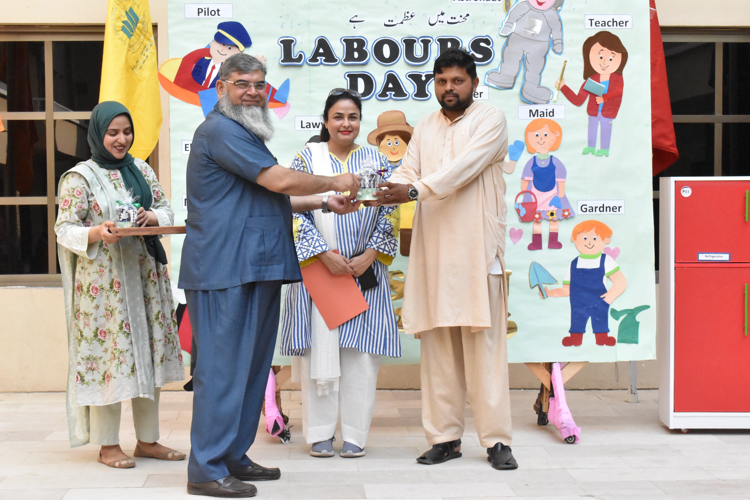 Preschool Mainstream Labor Day was celebrated to instill a sense of appreciation for hard work and gratitude towards the people who contribute to our daily lives. The children showed their heartfelt appreciation by giving small tokens of love and thanks to the ancillary staff, including handmade cards, drawings, and small gift and cocolate in expression of gratitude. This thoughtful gesture helped the children develop empathy, social skills, and an understanding of the importance of every individual’s role in the community, while recognizing the efforts of those who support them with kindness and respect.