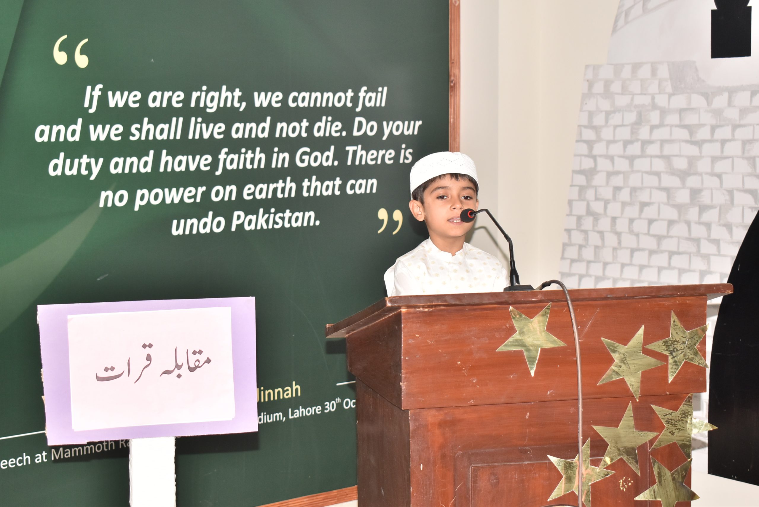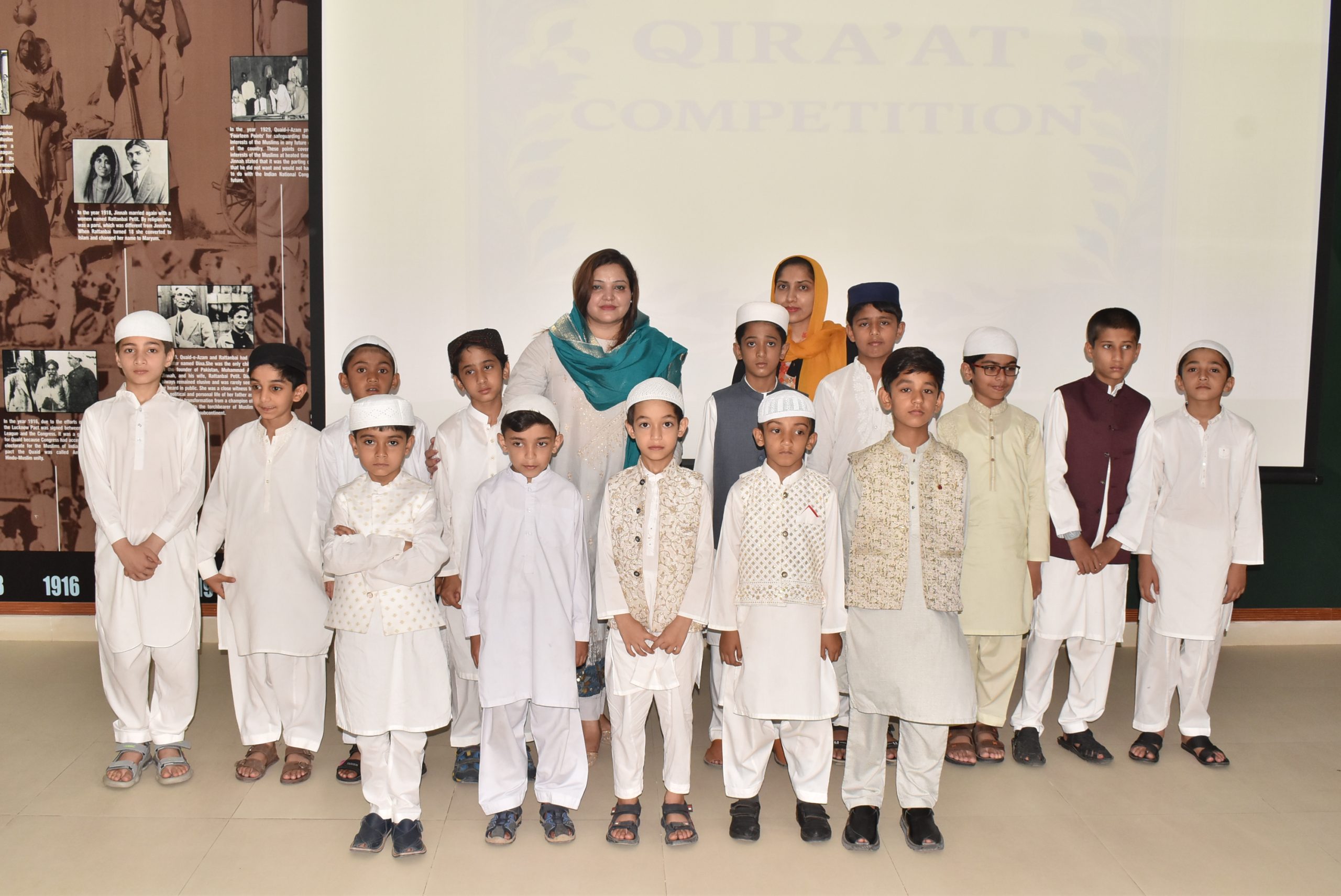 The Junior Boys Wing held a spiritually uplifting Qira’at competition during the CCA period, where students recited selected Surahs of the Holy Quran with devotion and proper Tajweed. A special highlight was the recitation of سورۃ الصف, which contains the powerful verse “بنیان مرصوص” (like a solidly constructed wall). This served as a timely reminder of unity and strength. The competition provided students with a valuable platform to showcase their Quranic recitation skills while emphasizing the importance of correct pronunciation, rhythm, and soulful expression. Participants were judged on Tajweed, voice clarity, and emotional engagement, making the event not only a test of memorization but also of spiritual depth and delivery. The atmosphere was filled with reverence, and the young reciters left a lasting impression on the audience, inspiring all to strengthen their connection with the Holy Quran.