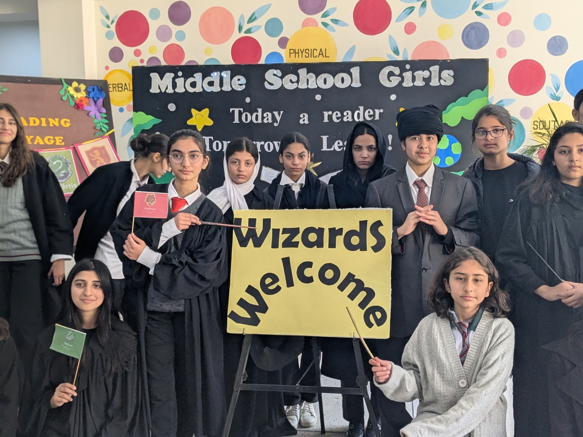 This time, the magical Wizarding World of 𝐉.𝐊. 𝐑𝐨𝐰𝐥𝐢𝐧𝐠 came alive as Grades 6,7 and 8 students enthusiastically participated in the 𝐑𝐞𝐚𝐝𝐢𝐧𝐠 𝐕𝐨𝐲𝐚𝐠𝐞 based on “𝐇𝐚𝐫𝐫𝐲 𝐏𝐨𝐭𝐭𝐞𝐫 𝐚𝐧𝐝 𝐭𝐡𝐞 𝐒𝐨𝐫𝐜𝐞𝐫𝐞𝐫’𝐬 𝐒𝐭𝐨𝐧𝐞.” ⚡🏰 Organized by the Middle Wing (Girls)’ English Department, the event aimed to nurture students’ passion for reading while strengthening their speaking and presentation skills. Filled with excitement and house spirit, students brought the Wizarding World to life through character portrayals, Dramatic act, and an engaging quiz competition.