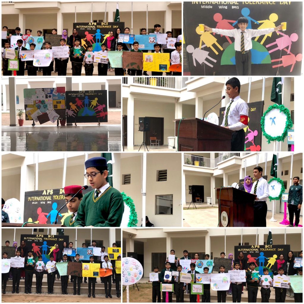Students of Middle Wing Boys actively participated in various activities conducted during the morning assembly to celebrate International Tolerance Day, showcasing their commitment to diversity, respect, and inclusion through meaningful slogans, posters, discussions, and creative expressions.